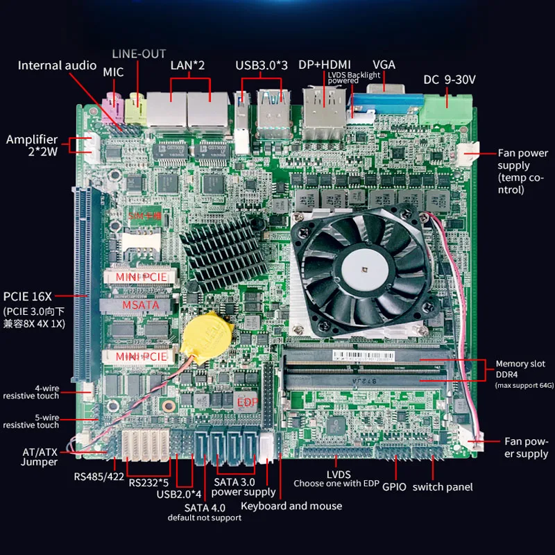 Product Name: اللوحة الأم الصناعية مع Xeon وحدة المعالجة المركزية I7- 6700HQ 7700HQ معالج داخلي DDR4 Ram اللوحة الرئيسية