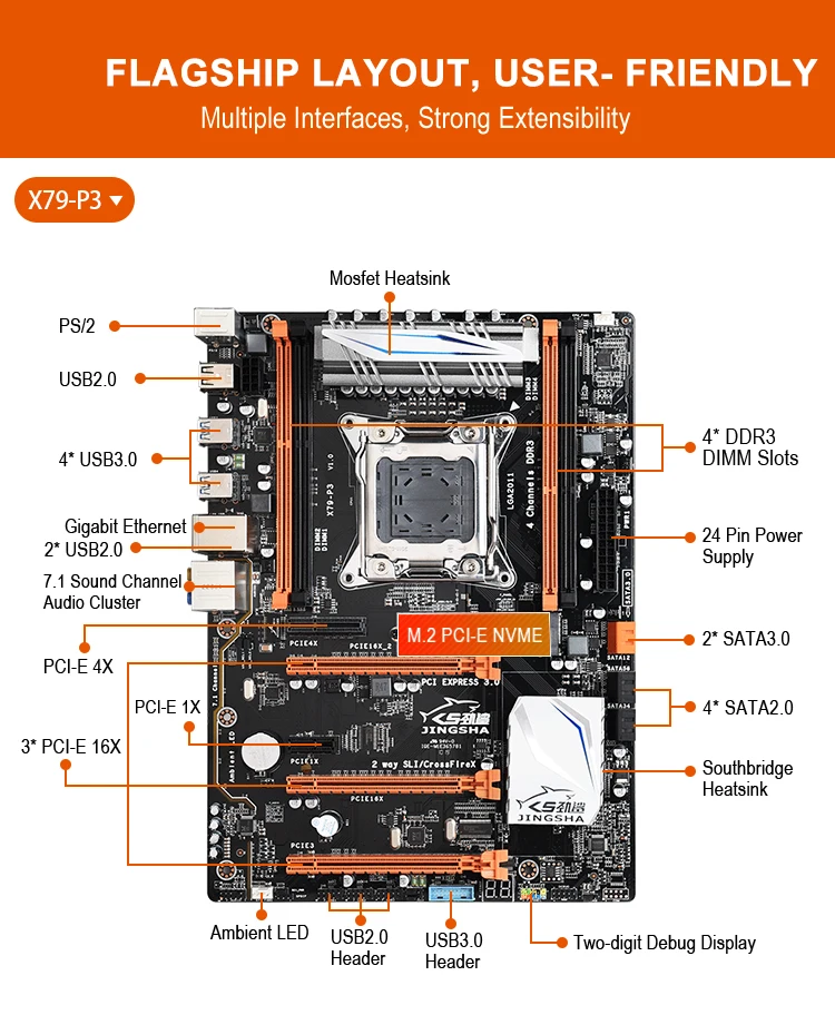 Product Name: JINGSHA X79P3 LGA اللوحة مجموعة 4 قنوات مع سيون E5 2697v2 و 4*8GB = 32GB 1600MHZ Ddr3 Ecc Reg RAM