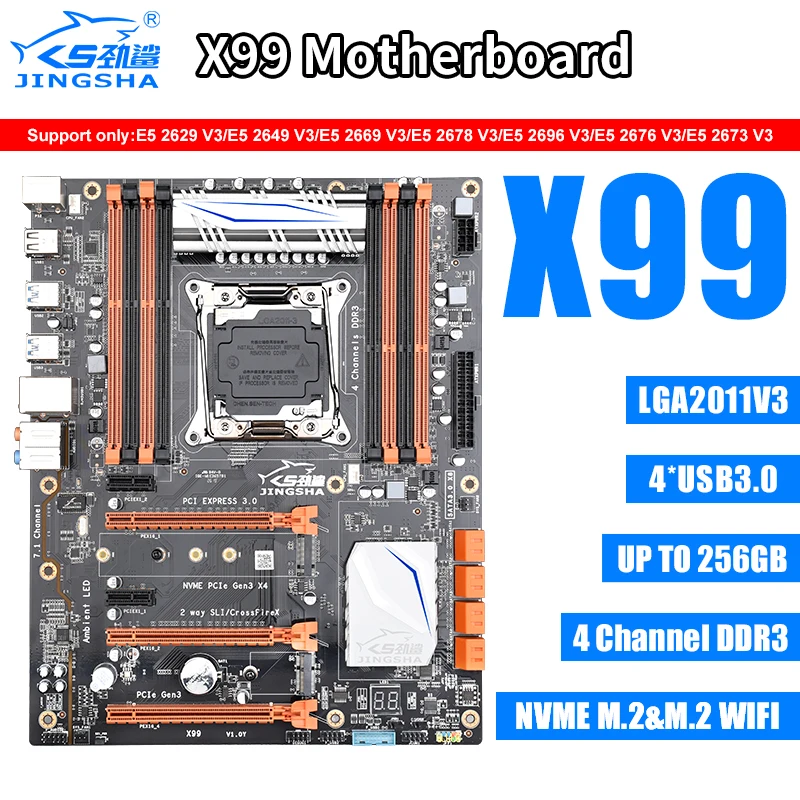 Product Name: JINGSHA X99 اللوحة الأم مع سيون E5 2678V3 و 4*16GB = 16GB DDR3 RAM 8 * SATA3.0 تصل إلى 256GB NVME M.2 * M.2 WIFI